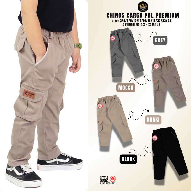 KUWIN CELANA PANJANG ANAK LITTLE HERO CHINO PANJANG CARGO PDL ANAK LAKI-LAKI ESTIMASI 1-13 TAHUN
