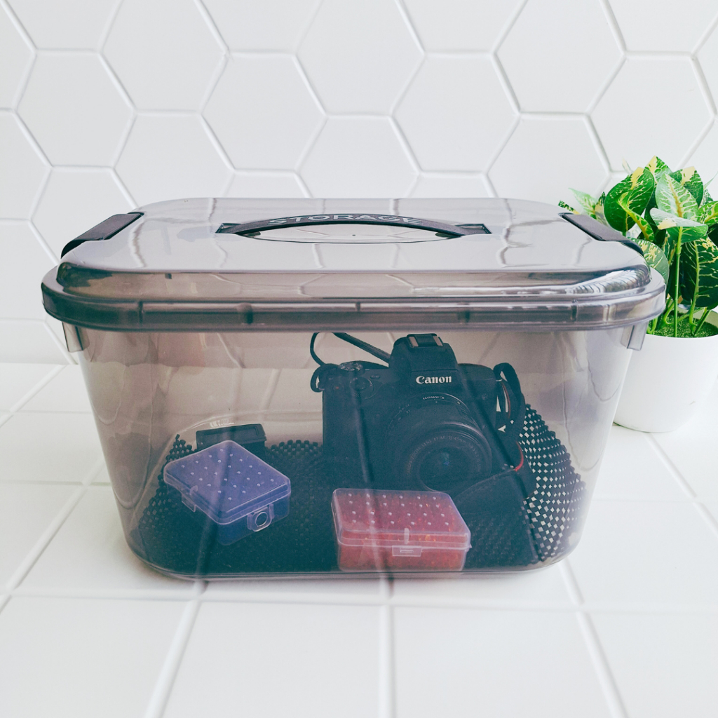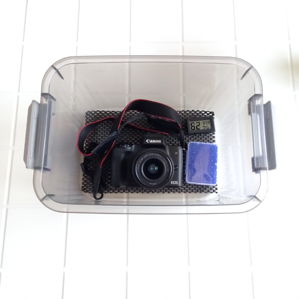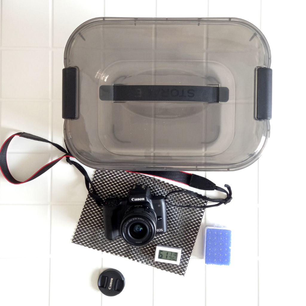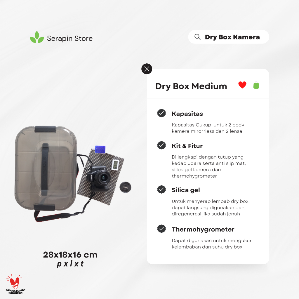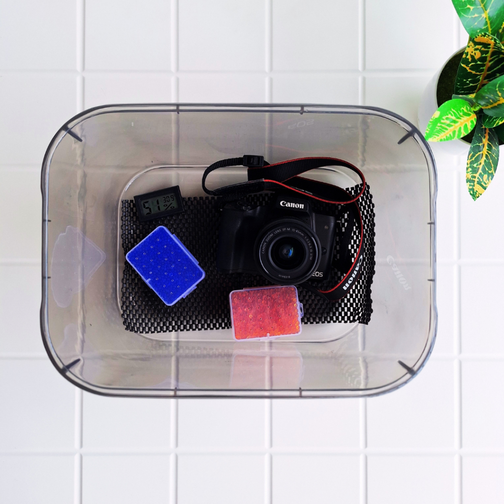 Dry box kamera tempat penyimpanan kamera dan lensa portable kita silica gel dan thermohygrometer - Fotology