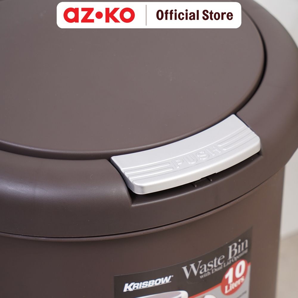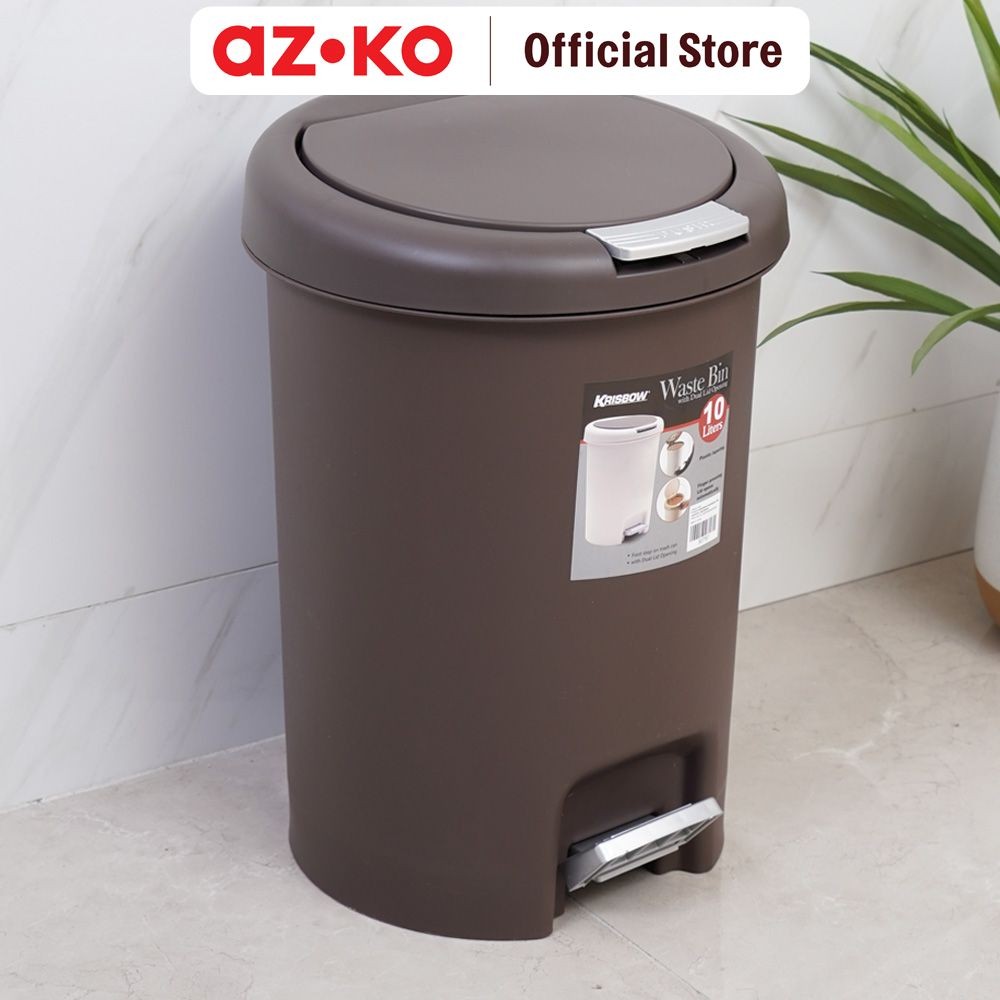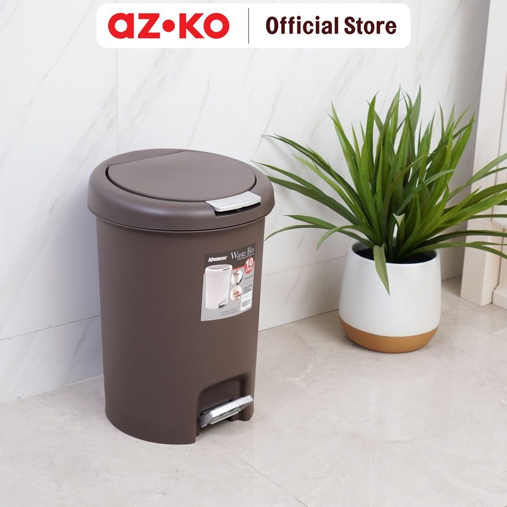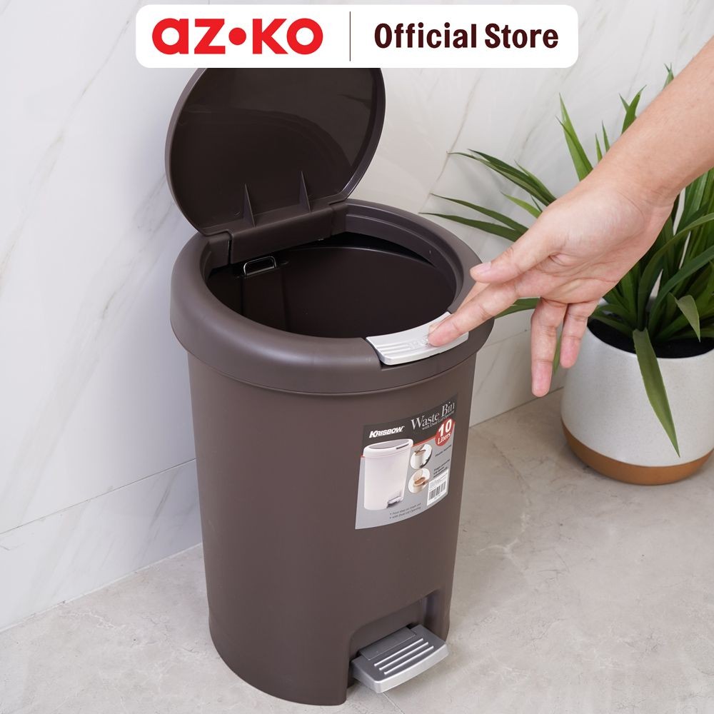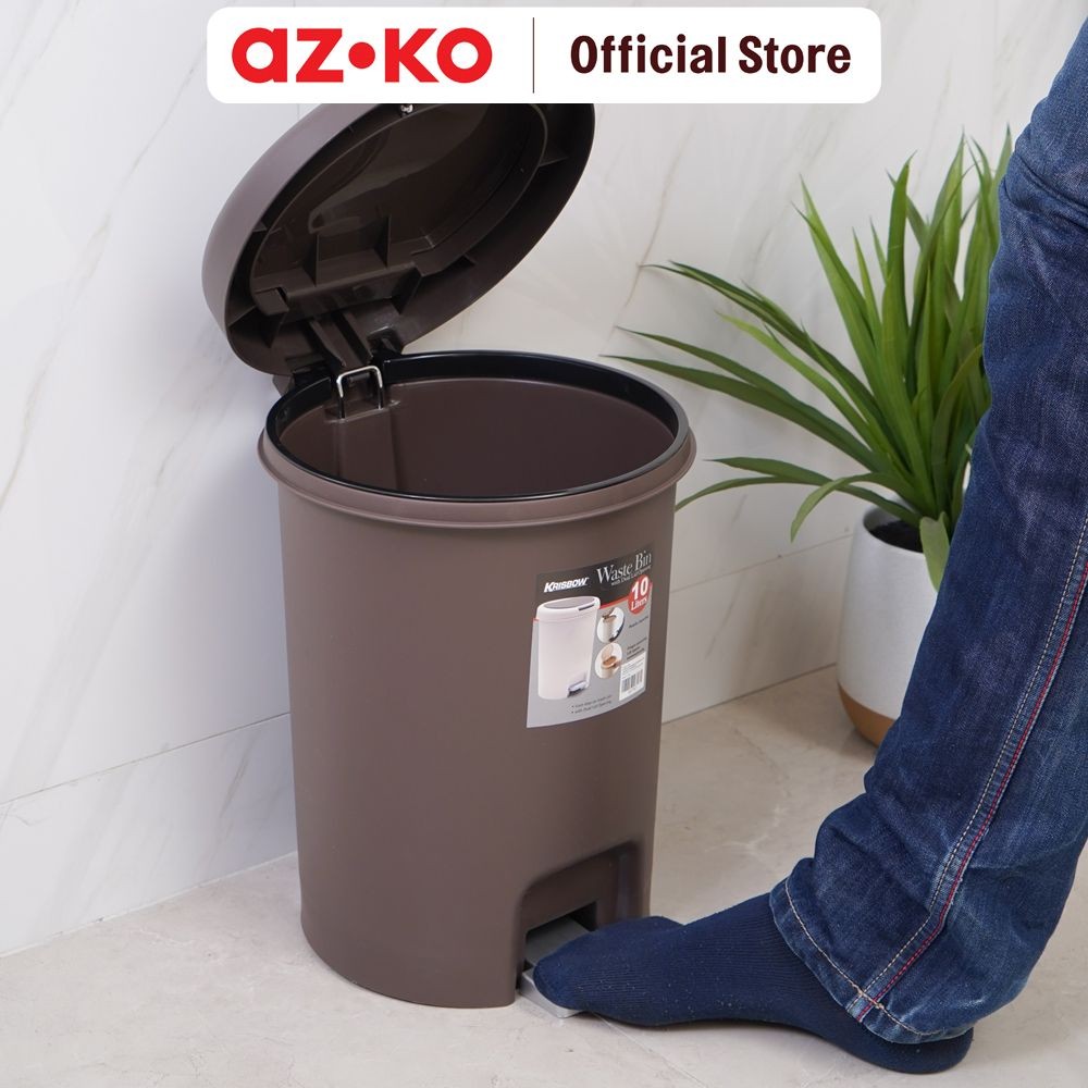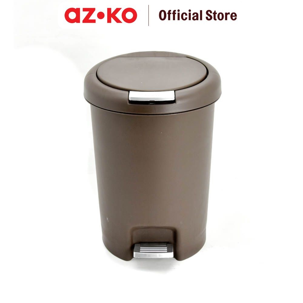 AZKO Tempat Sampah 10 ltr Plastik Round - Cokelat Tua Tong Sampah Pedal Wadah Pembuangan Alat Kebersihan Trash Bin