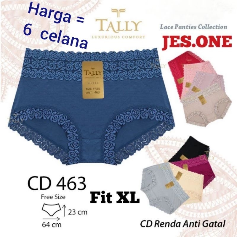 6pcs Tally 463 CD Celana Dalam Wanita Bambu Renda Sepusar