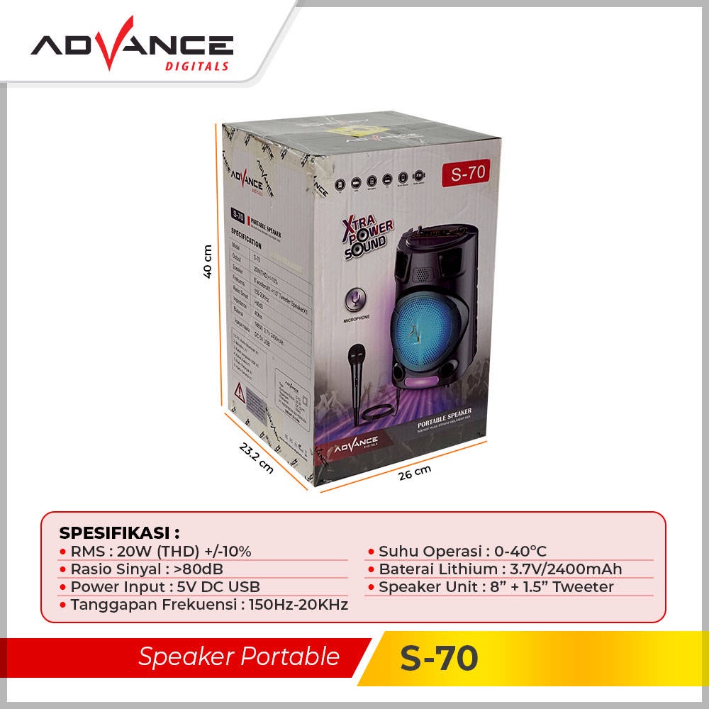 Advance Speaker Bluetooth karaoke portable+1xmic 8inch 70