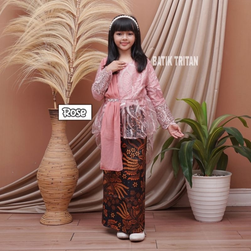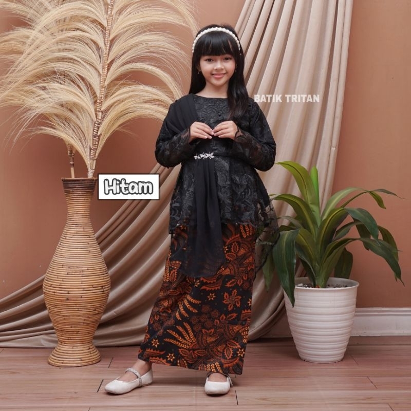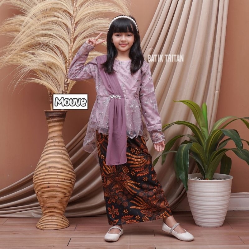 KEBAYA ANAK PEREMPUAN MODERN SELENDANG SERUTI USIA 6-12 TAHUN SETELAN KEBAYA ANAK PEREMPUAN