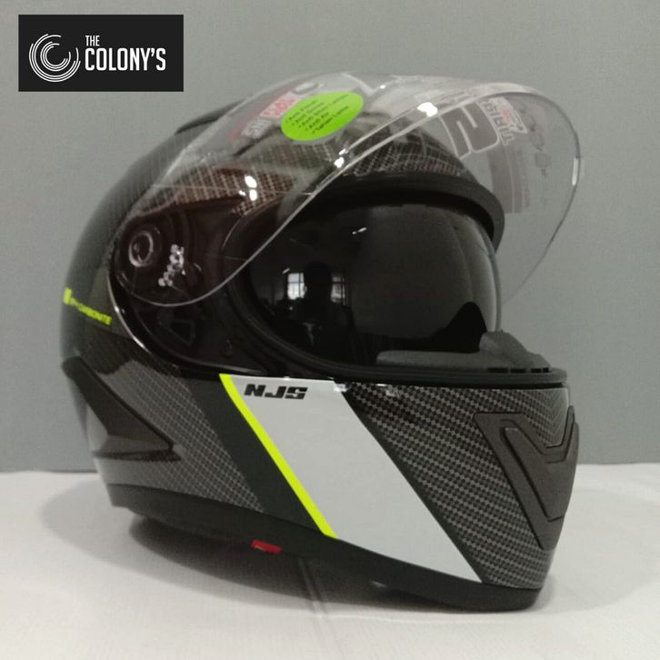 TERMURAH✅ Helm NJS Shadow N 814 Carbon Black Yellow Double Visor Helm NJS Fullface Free Smoke Visor