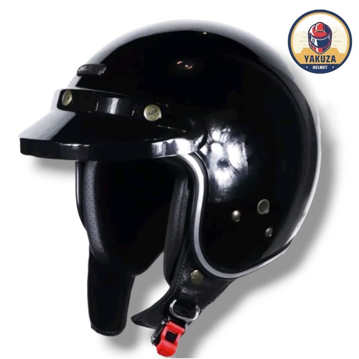 TERMURAH✅ Helm NJS NR-80's Solid HITAM LIST CROOM Helm Retro Half Face SNI