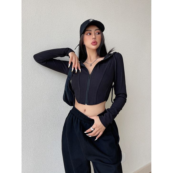 NEW Arrival Hoodie ZIPPER BASIC Sweater Jaket Zipper Crop Top Hoodie Wanita Kekinian Fashion Outfit Ootd