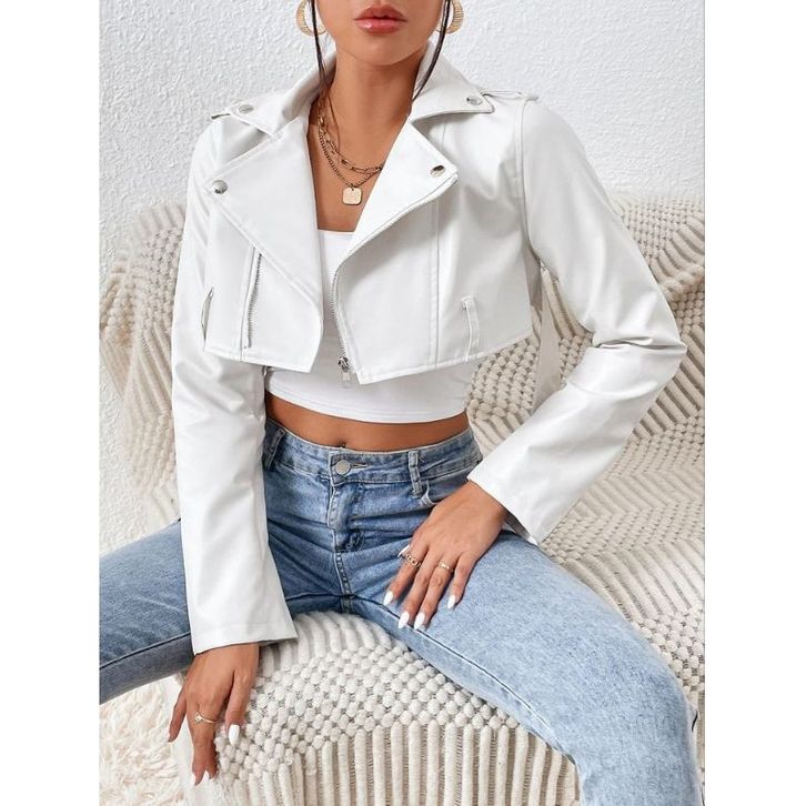 BARU jaket kulit wanita ramones changcuters korea style crop punk putih ucakg