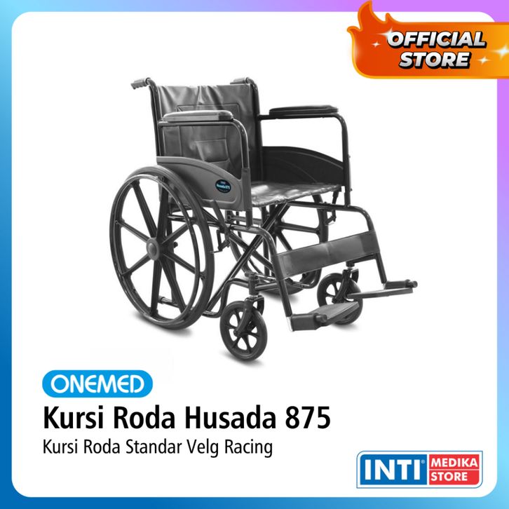ONEMED - Kursi Roda STANDAR Rumah Sakit Black Steel HUSADA FS 875 | Kursi Roda Manual Velg Racing