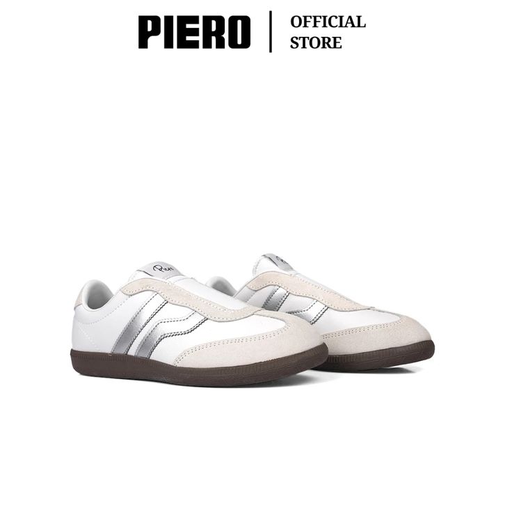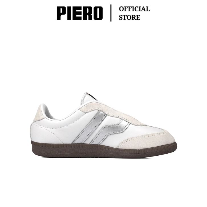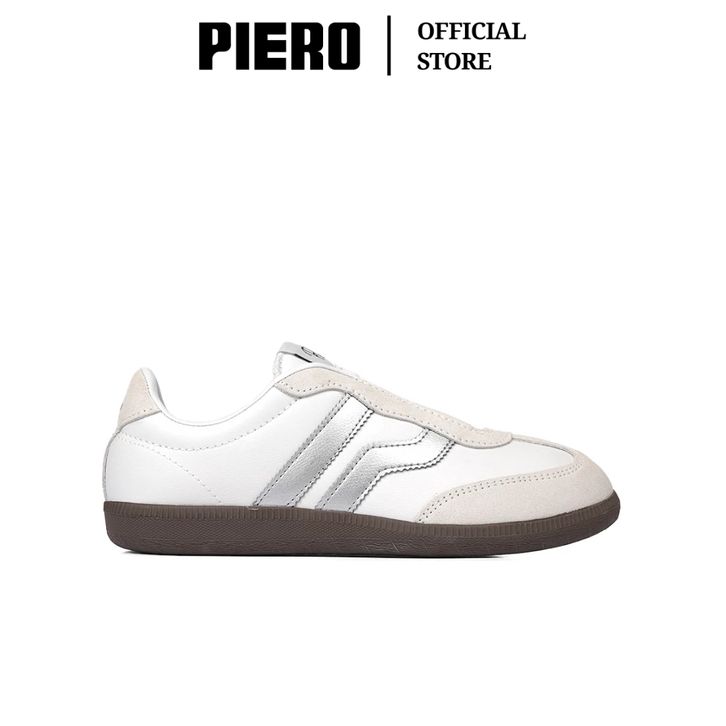 PIERO SEPATU SNEAKERS WANITA GRAND LONDON SLEEK W WHITE BROWN RUBBER SILVER PIE1000345