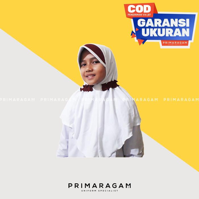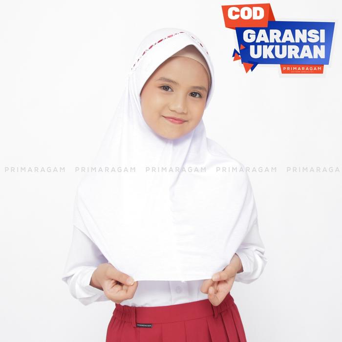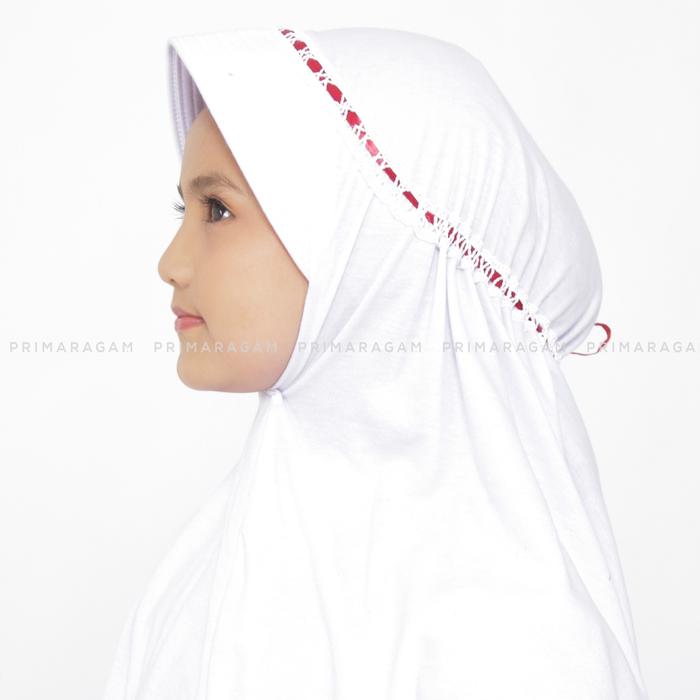 Primaragam Kerudung Sekolah Anak Sd Jilbab Putih Pita - VARIASI LEHER MERAH M