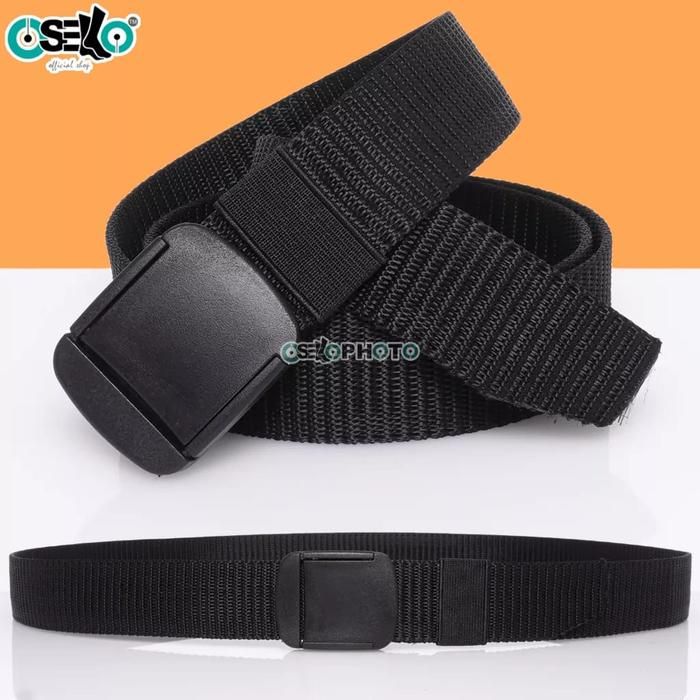 Ikat Pinggang Anak 3cm Gesper Sekolah Belt Kanvas Nylon - Hitam 115cm