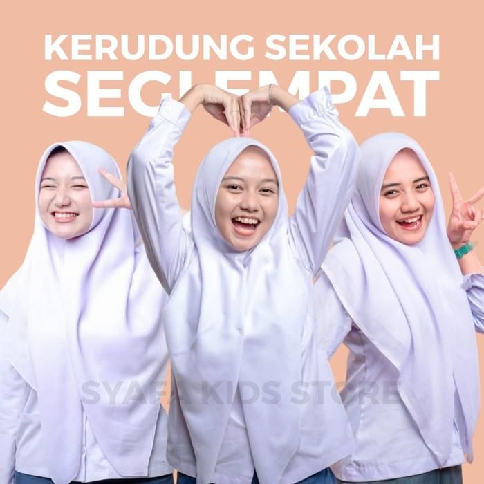 Kerudung Sekolah Segi Empat Putih Coklat SMP SMA Katun Tebal Premium - SEGIEMPAT PUTIH PARIS