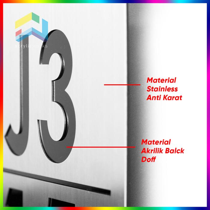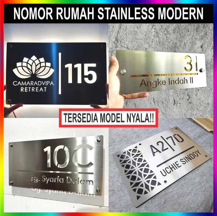 Nomor Rumah Stainless Steel Mewah Modern Eksklusif Elegan Custom - 1 Layer Standar 10 x 30