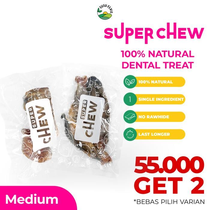 Susu Elvis - Snack Anjing Kucing Makanan Cemilan 100% Natural - Dried Dog Cat Dental Pet Treat - Super Chew Medium