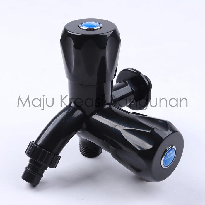 Kran Cabang PVC Shower New Soligen Keran Double Plastik S9 S10 S13 Engkol Mahkota Mix Putih Hitam - S9 Putih