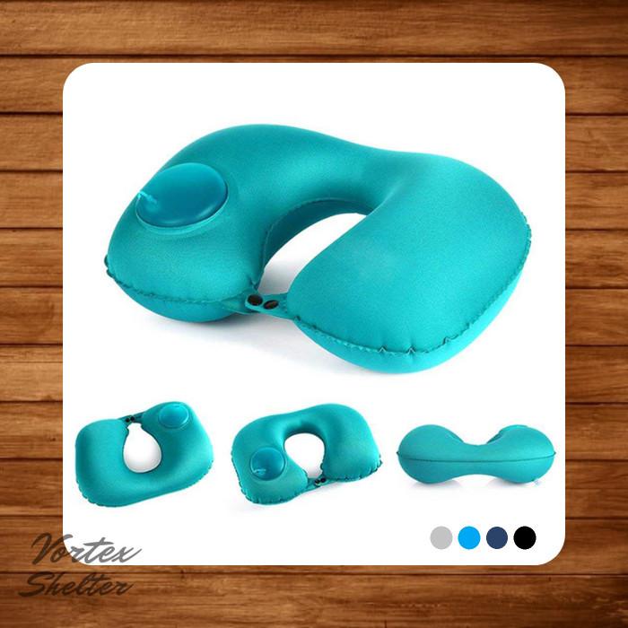 TaffSPORT Bantal Leher Travel Angin Pompa Tiup Inflatable Portable - Biru Muda