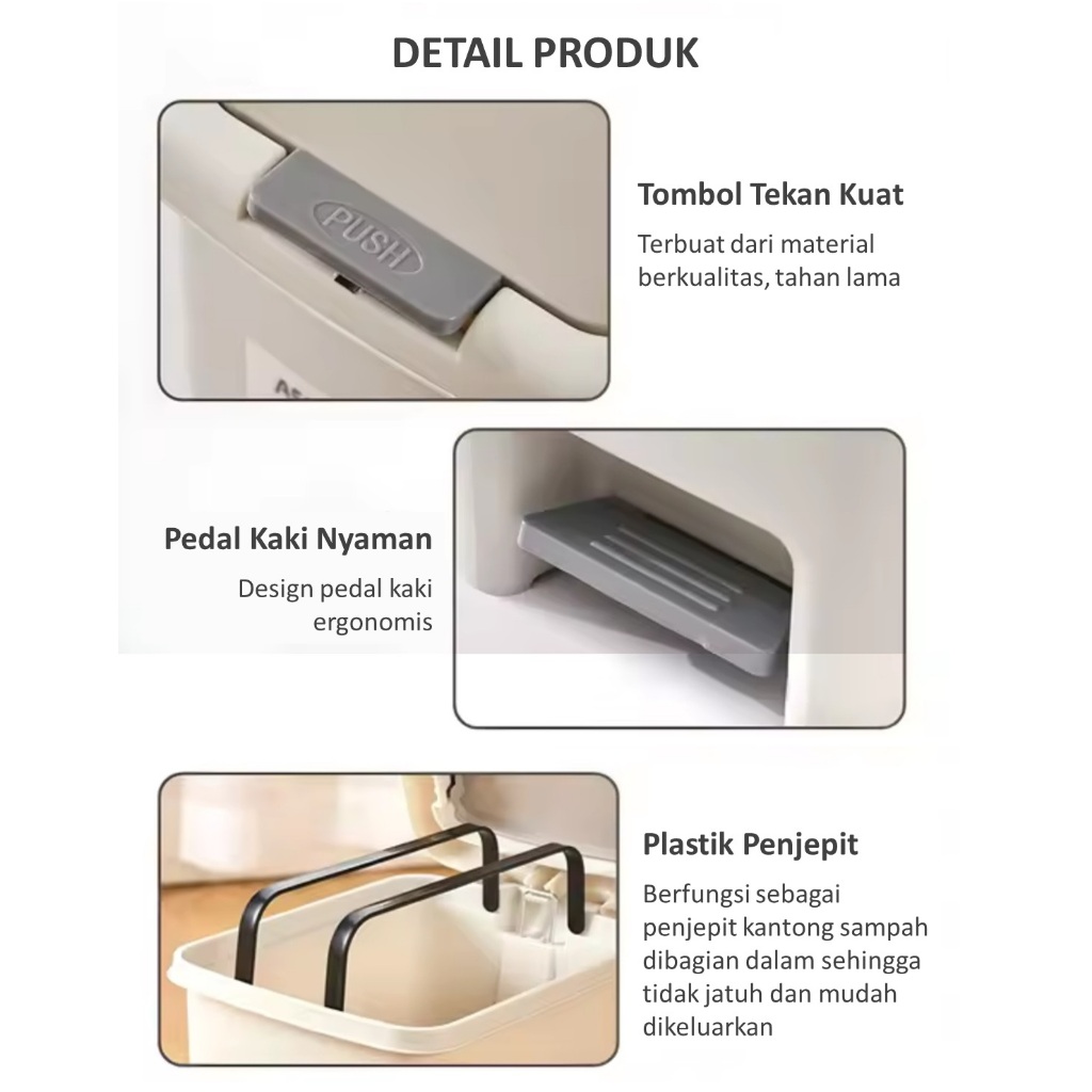 TEMPAT SAMPAH INJAK 8L 15L / TONG SAMPAH PLASTIK TERTUTUP / TRASH BIN KOTAK SAMPAH DAPUR KAMAR MANDI RUANG TAMU KAMAR TIDUR