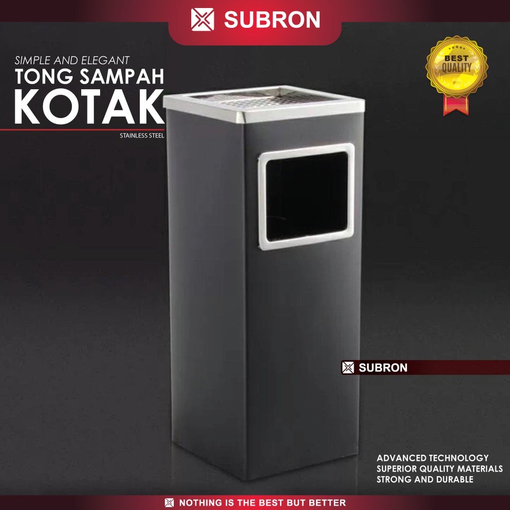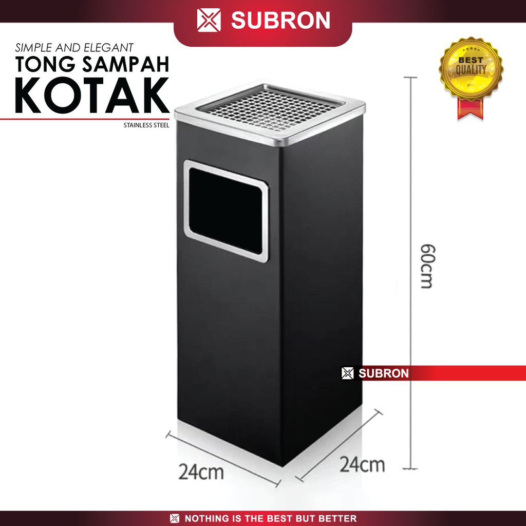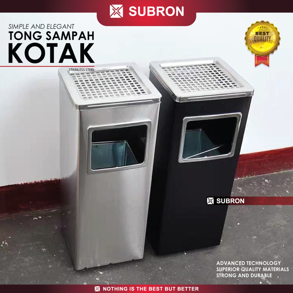 SUBRON Tong Sampah Kotak Hitam Silver Tempat Wadah Stainless Steel Asbak Kotak Hotel Mall