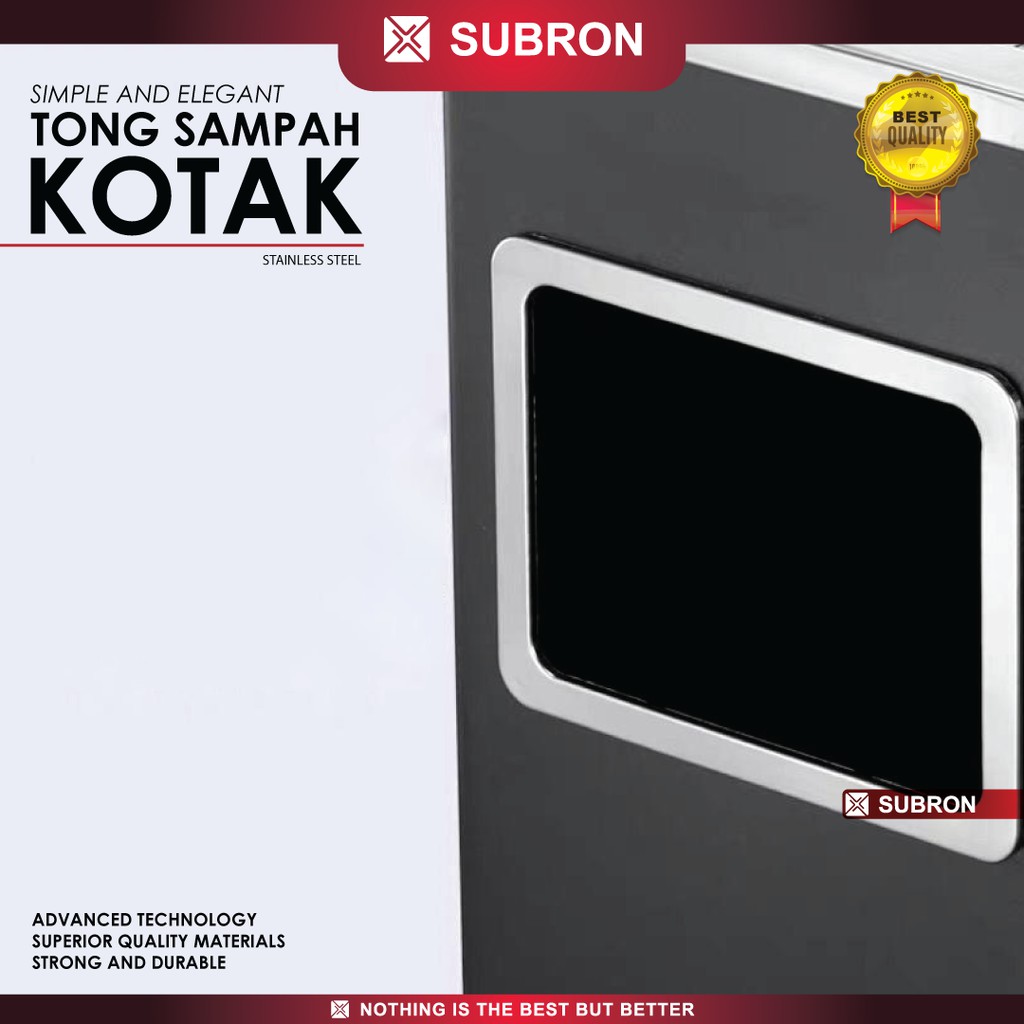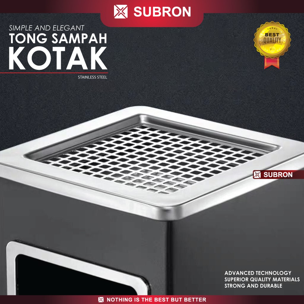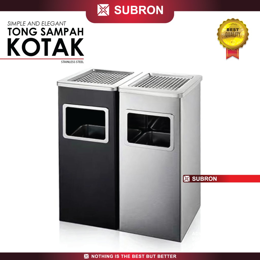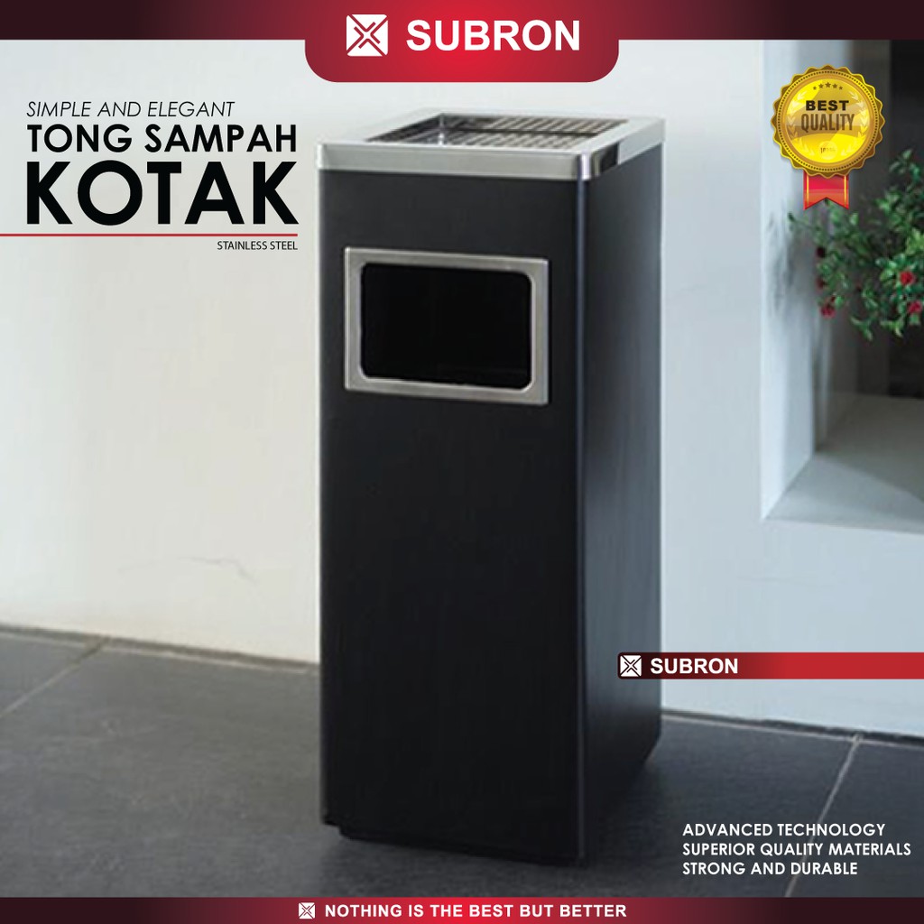 SUBRON Tong Sampah Kotak Hitam Silver Tempat Wadah Stainless Steel Asbak Kotak Hotel Mall