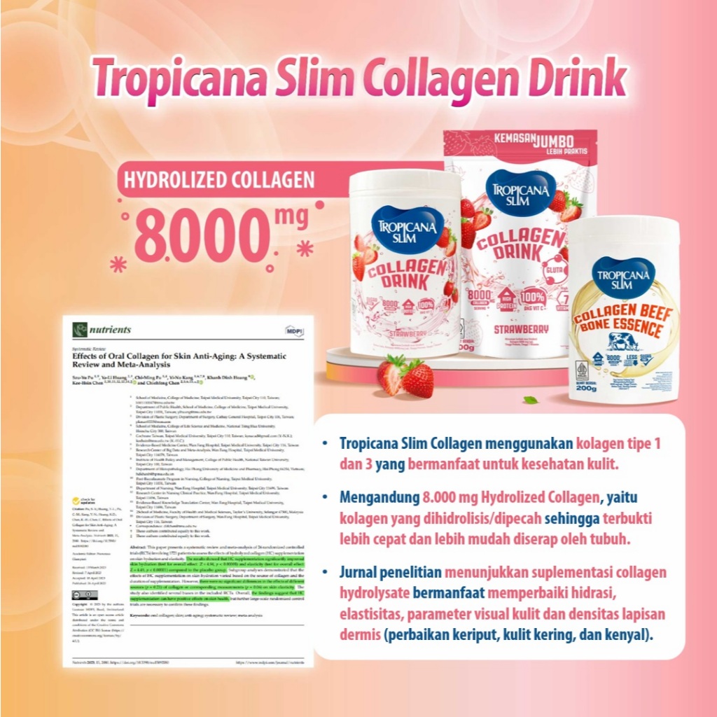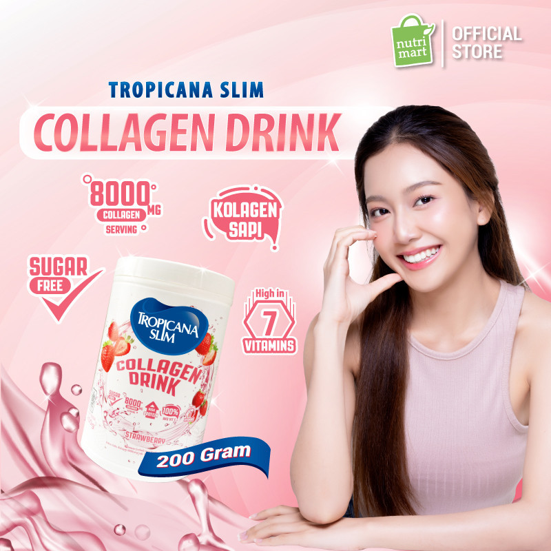 TROPICANA SLIM COLLAGEN DRINK STRAWBERRY 200GR - MINUMAN KOLAGEN BEBAS GULA DENGAN RASA STROBERI NIKMAT UNTUK KESEHATAN