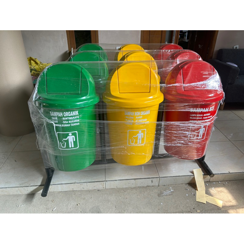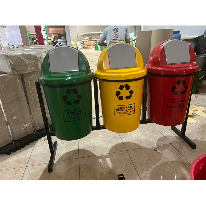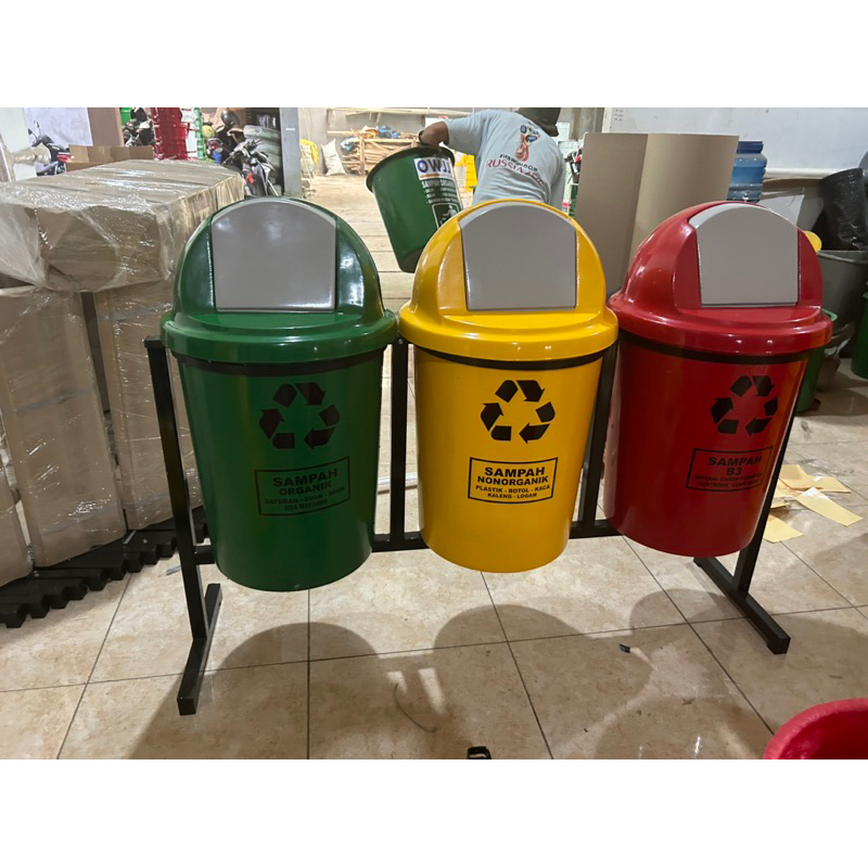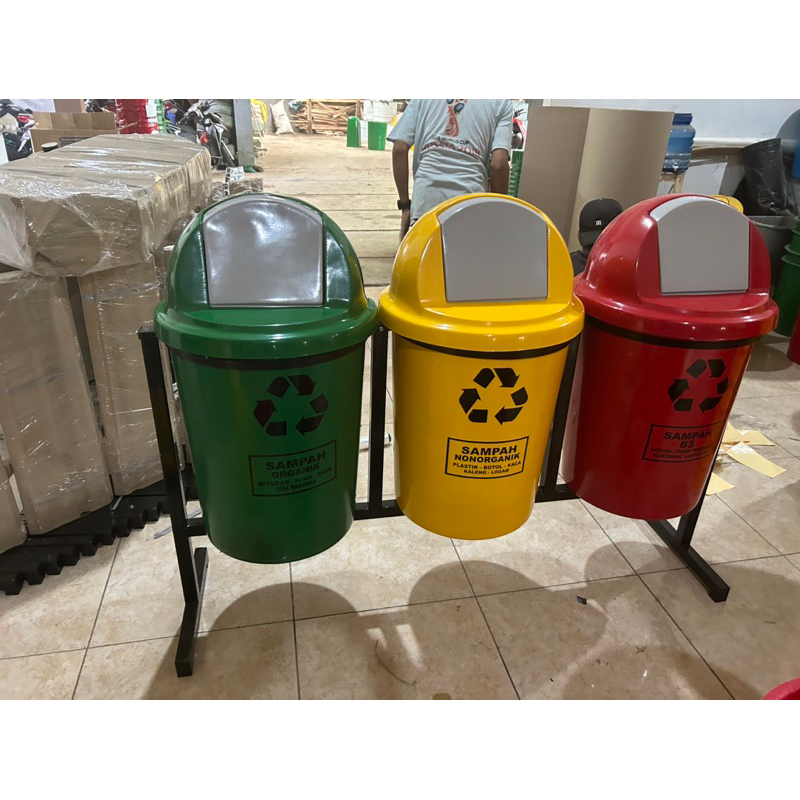 tempat sampah 3 pilah kapasitas 80 litter tempat sampah gantung, material fiberglass
