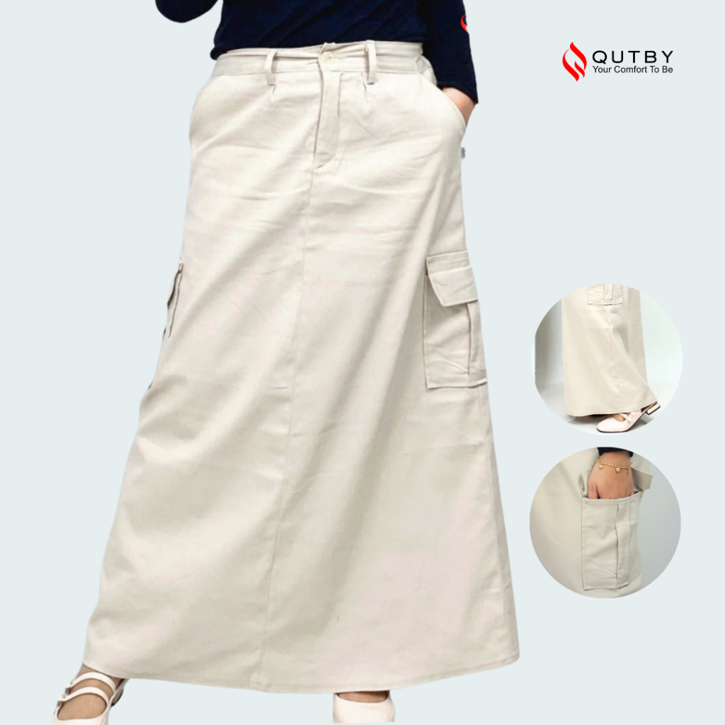 QUTBY - Rok Cargo A-Line Wanita Bahan Katun