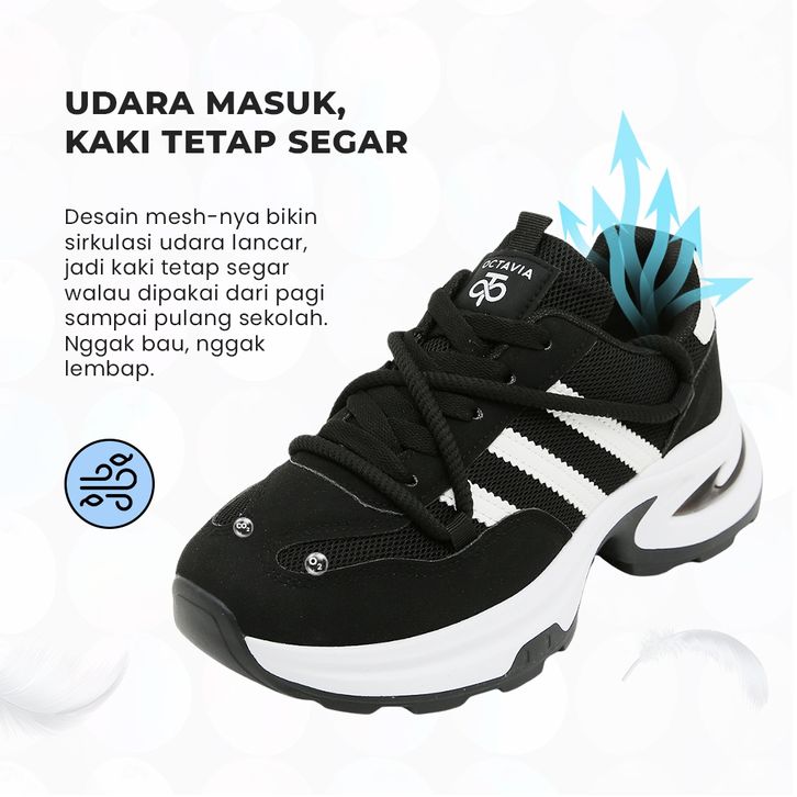 [BACK TO SCHOOL] OCTAVIA Sepatu Sekolah Hitam Wanita Sneakers HighSole Sporty Series Korean Style Kekinian #OC-F018