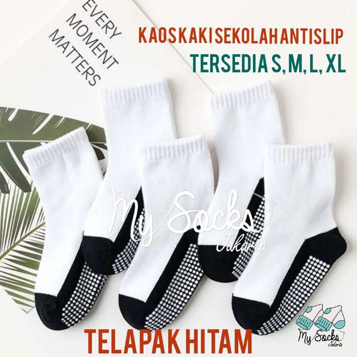 kaos kaki sekolah anti slip / antislip anak putih telapak hitam abu polos hitam - Telapak hitam S ( insole 11-14)