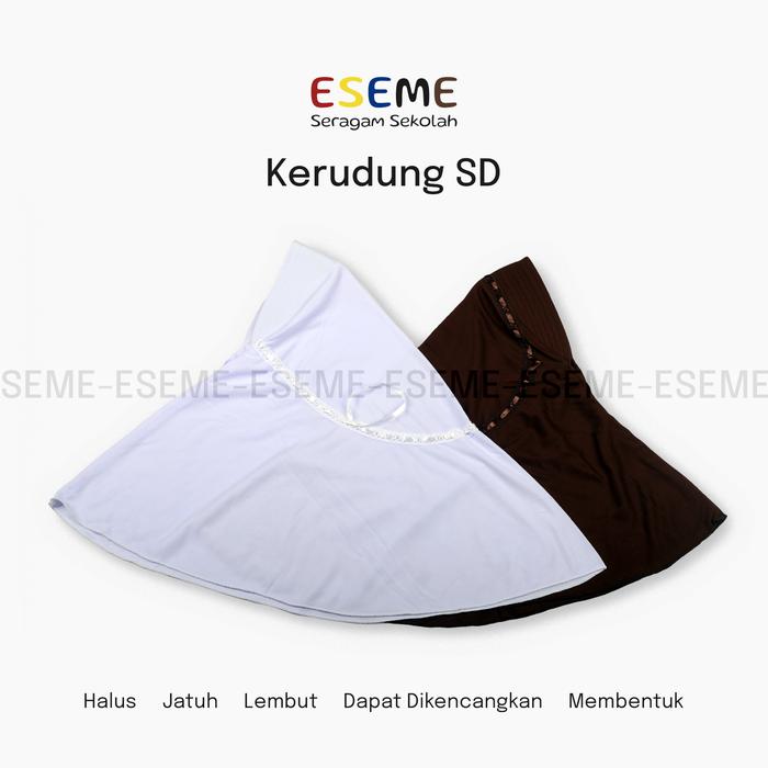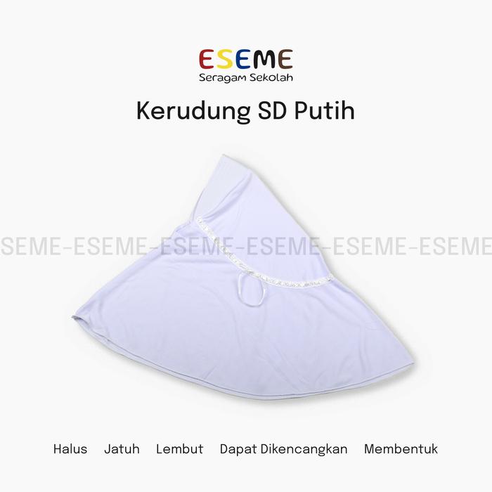 Kerudung hijab sekolah SD serut pita Putih dan Pramuka anak instan Muslim - Putih Kecil