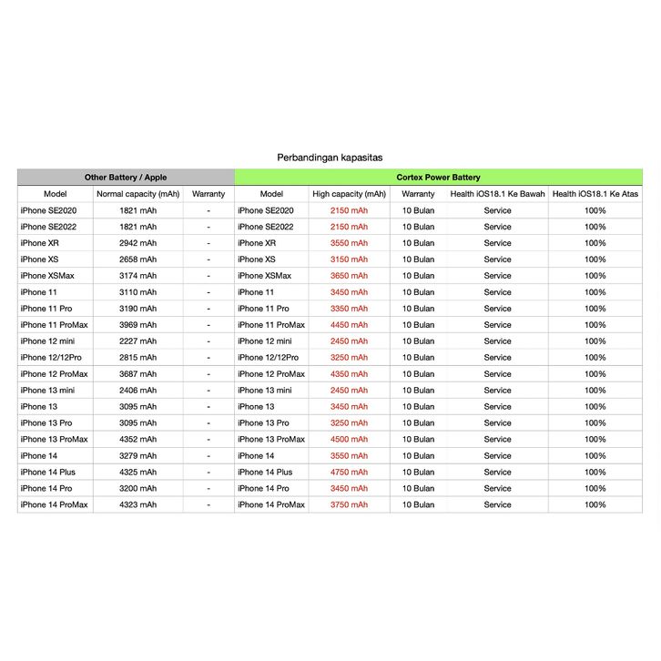 BEST SELLER Cortex Power - Baterai iPhone14 Double Power IC High Capacity Batre Batrai Baterai Battery Original berkual