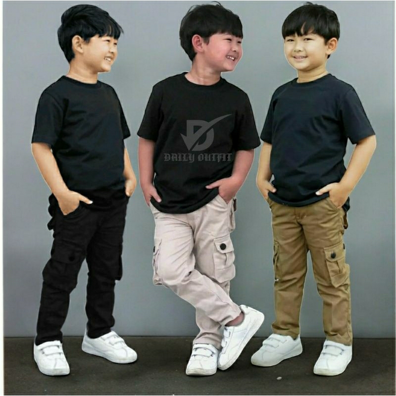 DAILYOUTFIT [TERLARIS] CELANA CARGO PANJANG ANAK LAKI-LAKI UKURAN 1-13 TAHUN PREMIUM QUALITY SLIMFIT ANAK COWOK SKINNY POLOS ANAK COWOK