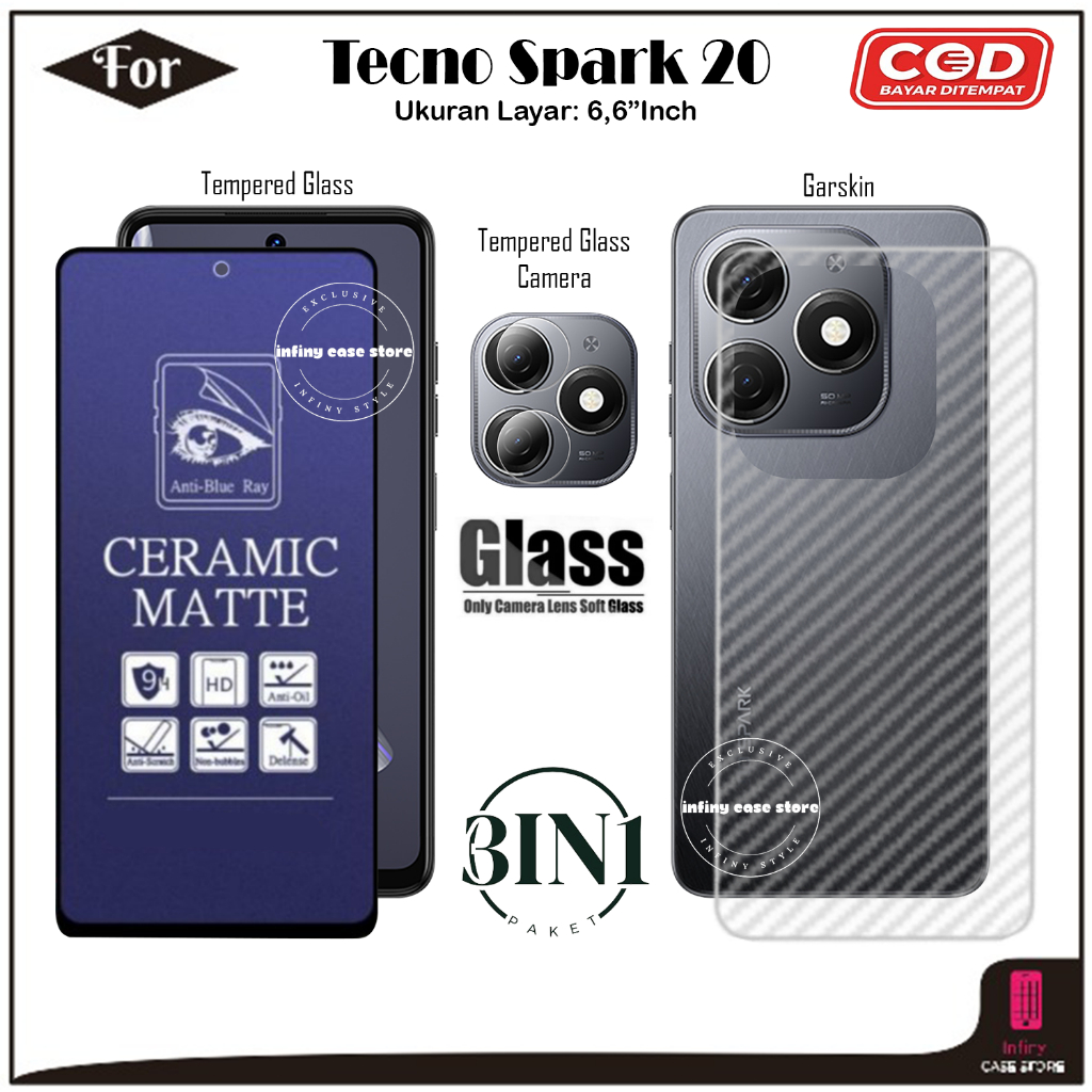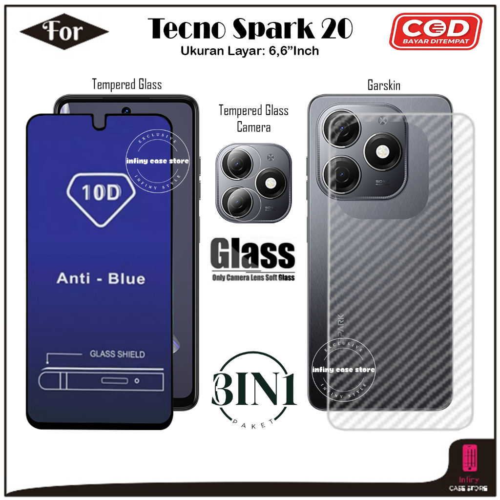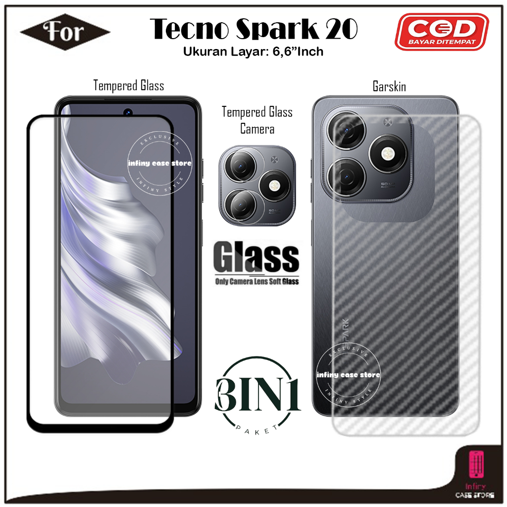 Paket 3IN1 Anti Gores Tecno Spark 20 20C 20P 20 Pro Tempered Glass Full Cover
