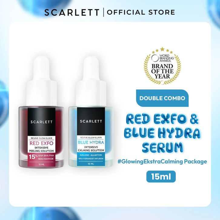 2pcs Bundle Red Exfo Peeling Serum dan Blue Hydra Calming Serum Combo Mencerahkan, Membuat Kulit Glowing - Peeling Serum