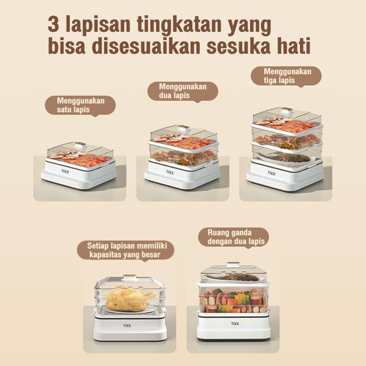 Kukusan Listrik 24L Electric Cooker 3 Lapis Hotpot Steamer Listrik Multifungsi