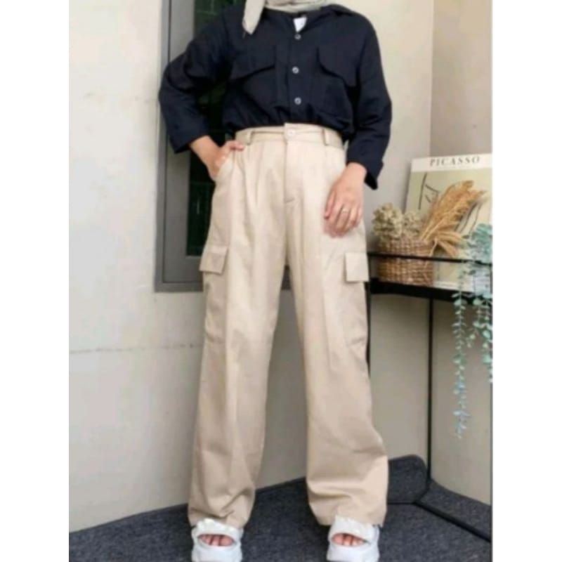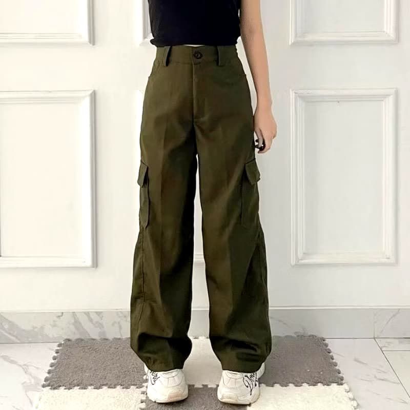 CELANA CARGO ANAK PEREMPUAN USIA 8-16 TAHUN BAHAN KATUN DRILL NYAMAN KOREAN STYLE