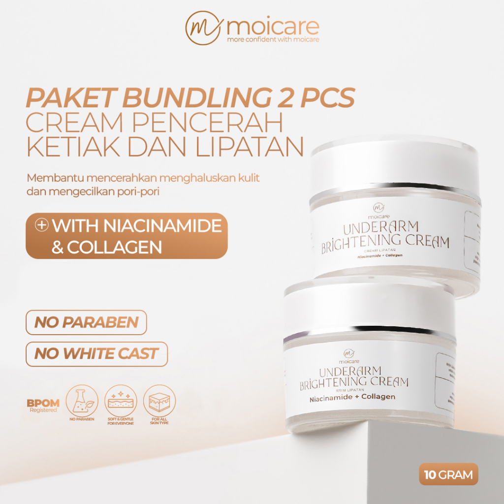 MOICARE PAKET BUNDLING 2 PCS UNDERARM CREAM WHITENING NIACINAMIDE & COLLAGEN PENCERAH KULIT LIPATAN | PAKET HEMAT MOICAR