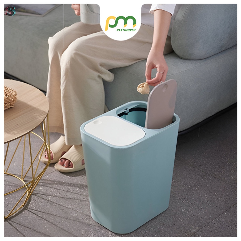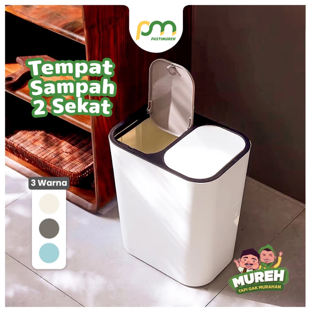 PASTIMUREH | Tempat Sampah Pilah 2 / Tong Sampah 15L Organik Anorganik / Tempat Sampah Dapur Kamar SEKAT 2