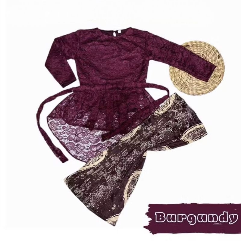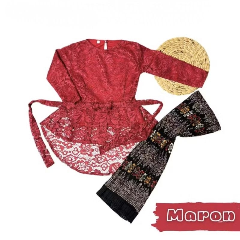 SET BAJU KEBAYA ANAK PEREMPUAN MODERN BURGUNDY WISUDA TK SD SMP ROK PLISKET USIA 3 SAMPAI 12TAHUN