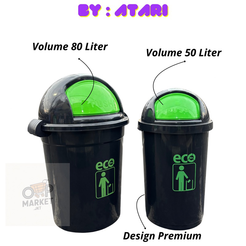 Atari - Tempat Sampah Bulat 50-80 Liter Tutup Push- Tong Sampah Bulat Hitam
