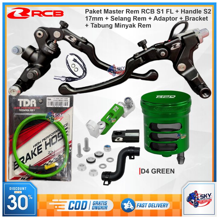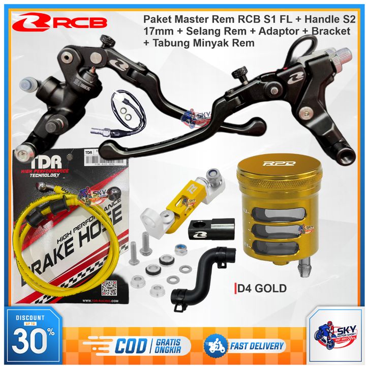 Paketan Master Rem RCB S1 FL 17mm + Handle Kiri S2 + Selang Rem TDR + Bracket Tabung Prism + Adaptor Selang Rem +