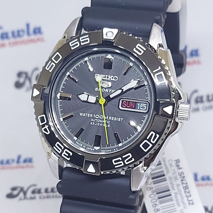 Seiko 5 Sports SNZB23J2 Black Dial Rubber - Jam Tangan Pria SNZB23