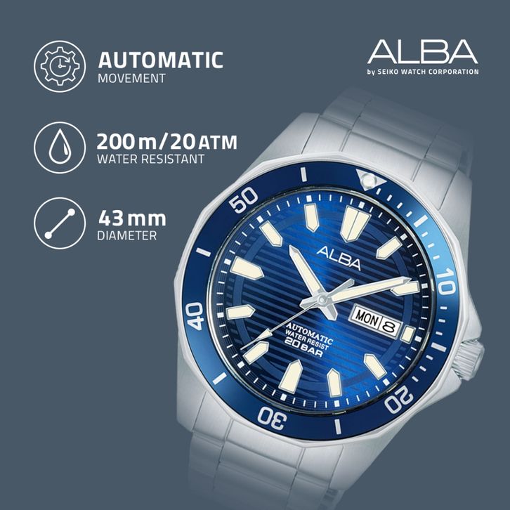 ALBA Jam Tangan Pria AL4453 Automatic Stainless Steel Silver Watch