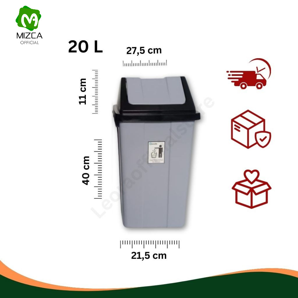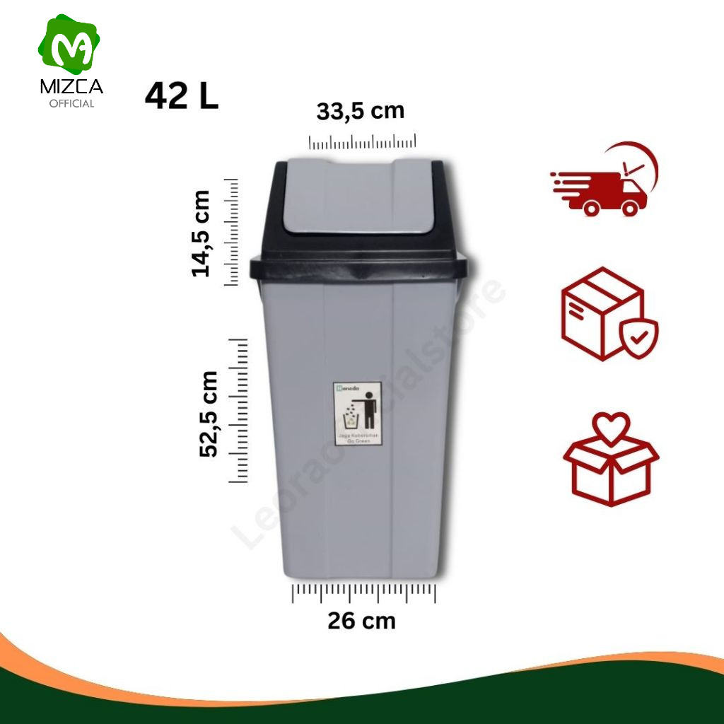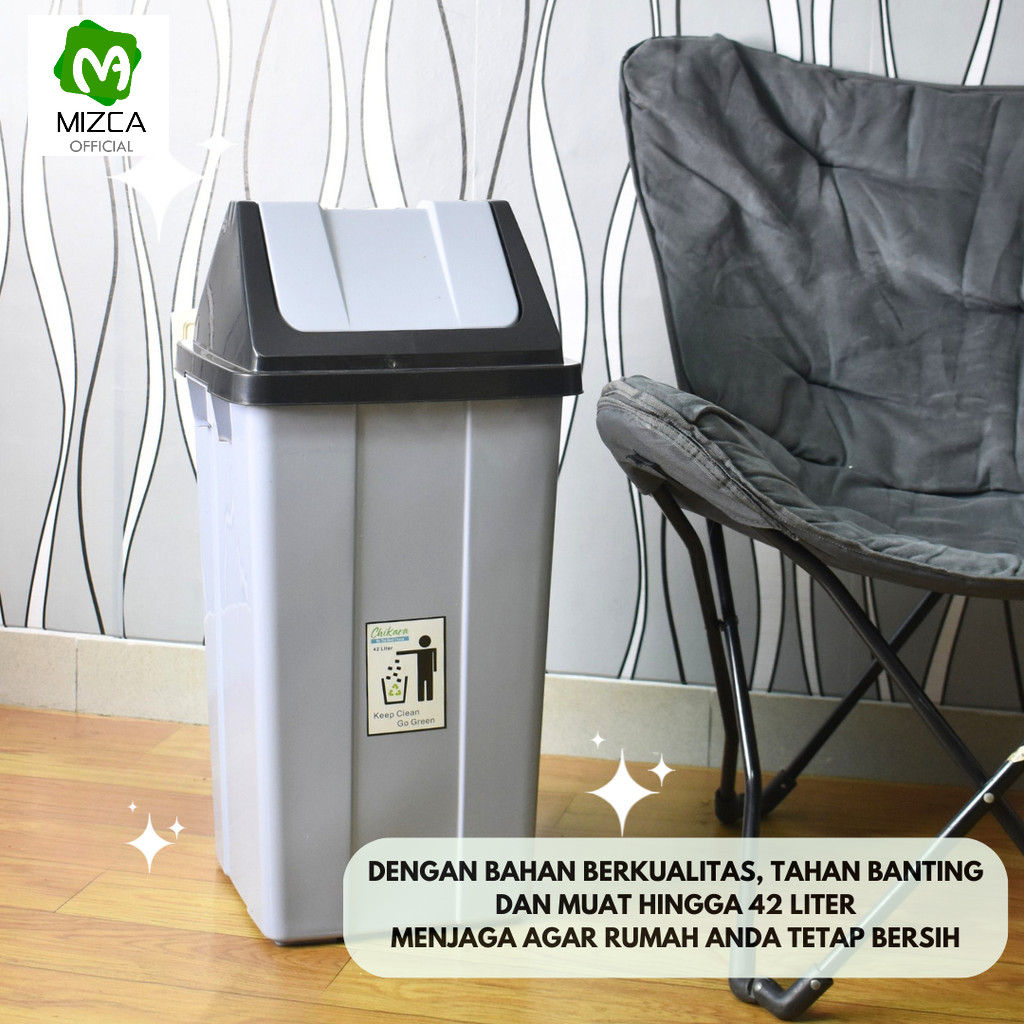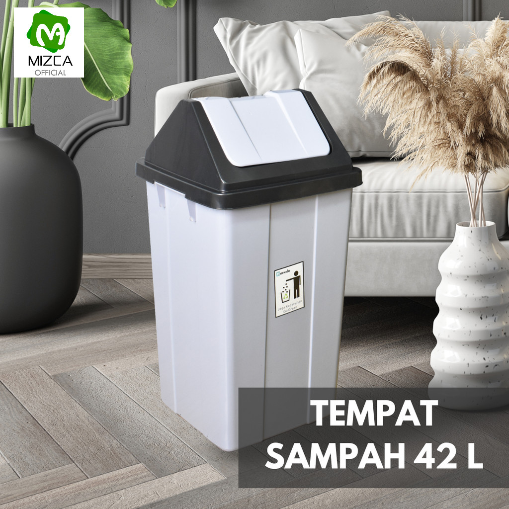 MIZCA | Haneda Tempat Sampah 42 Liter Plastik Tutup Goyang/Tong Sampah Tutup Ayun/Trash Bin Garbage