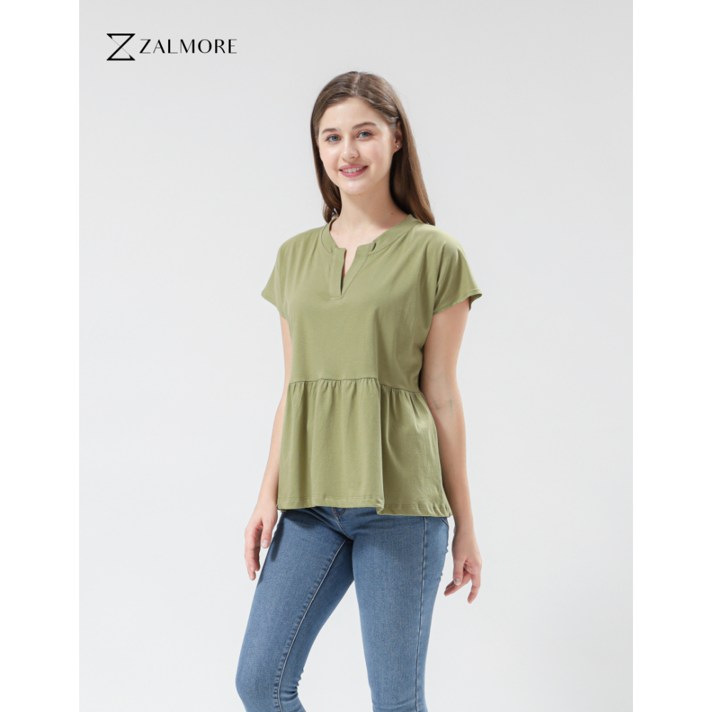 Zalmore Vneck Loose Peplum Top Premium Cotton - Atasan Wanita
