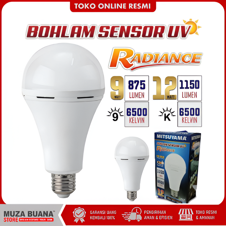 MUZA BUANA | Lampu Otomatis Sensor Cahaya - Bohlam Sensor Cahaya 12W & 9W LED Radiance Sensor UV - 99 Elektronik