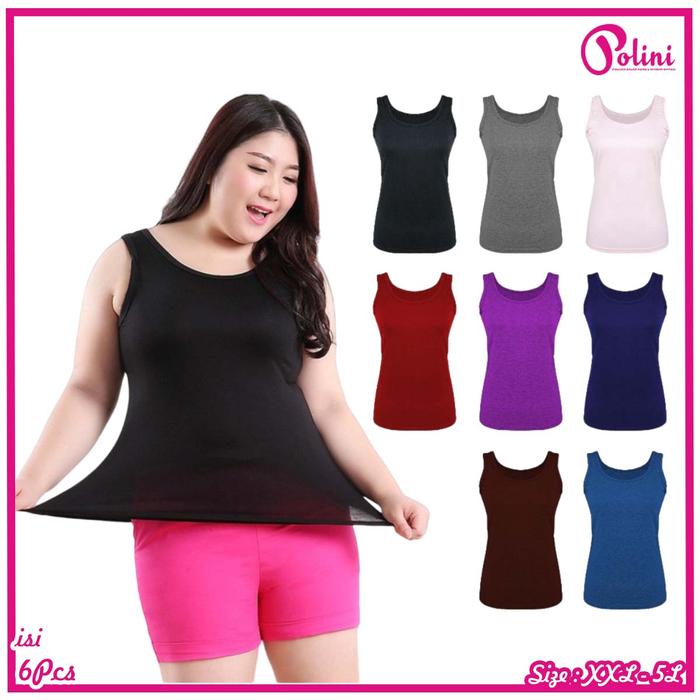 Polini - Paket Isi 6Pcs Tanktop Cewek Singlet Atasan Dalaman Wanita JUMBO Tali Lebar ESSEN Bahan Katun Nyaman di pakai