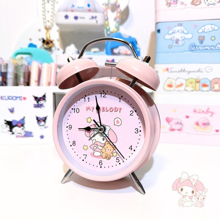 Jam Weker Sanrio Jam Alarm Kuromi Jam Beker Anak Motif Melody Jam Meja Bunyi Kring Cinnamonroll