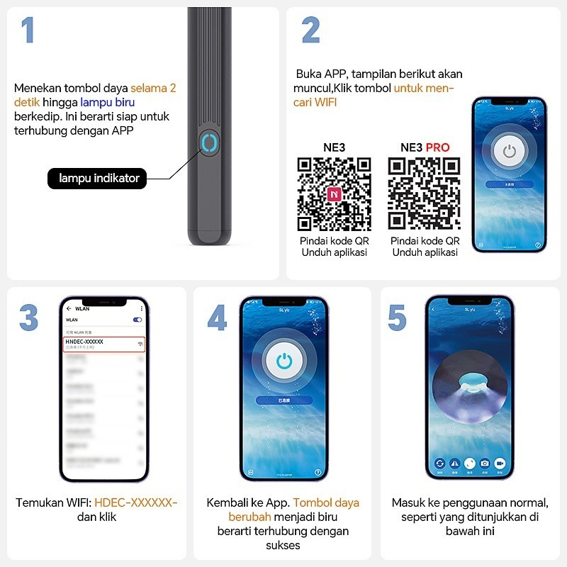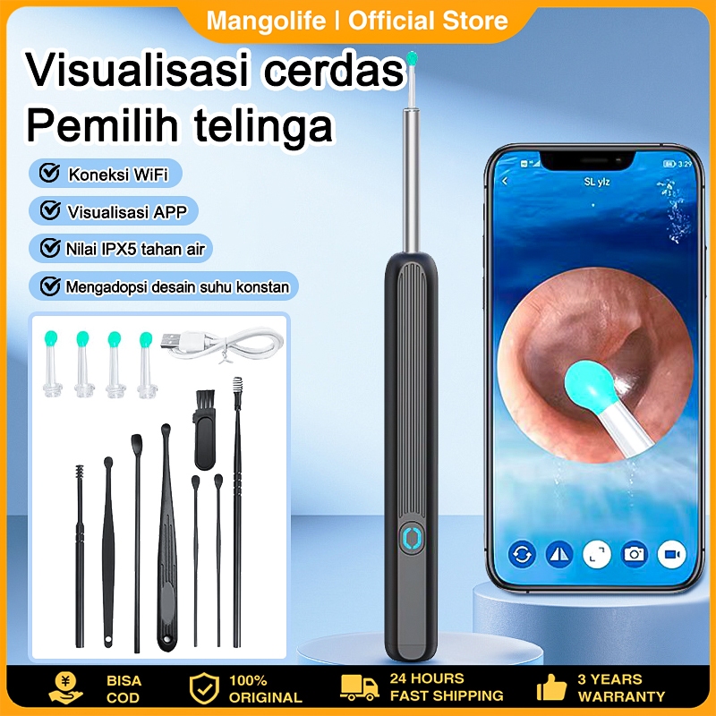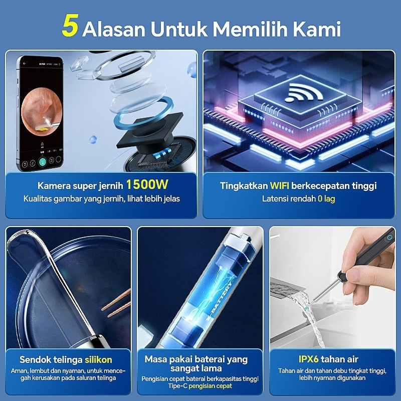 Kamera Pembersih Telinga HD 1080P + IP67 untuk Bayi/Anak - Gyroscope 3-Axis, WiFi Monitoring, Tahan Air, LED Light