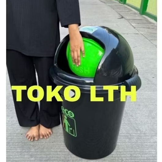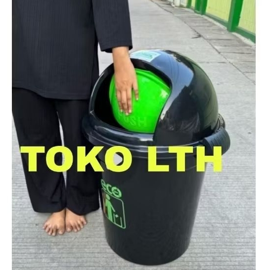 TEMPAT SAMPAH ECO 50 80 LITER BULAT TONG SAMPAH TUTUP PUSH HITAM 9873 9874 ATARI DUSTBIN