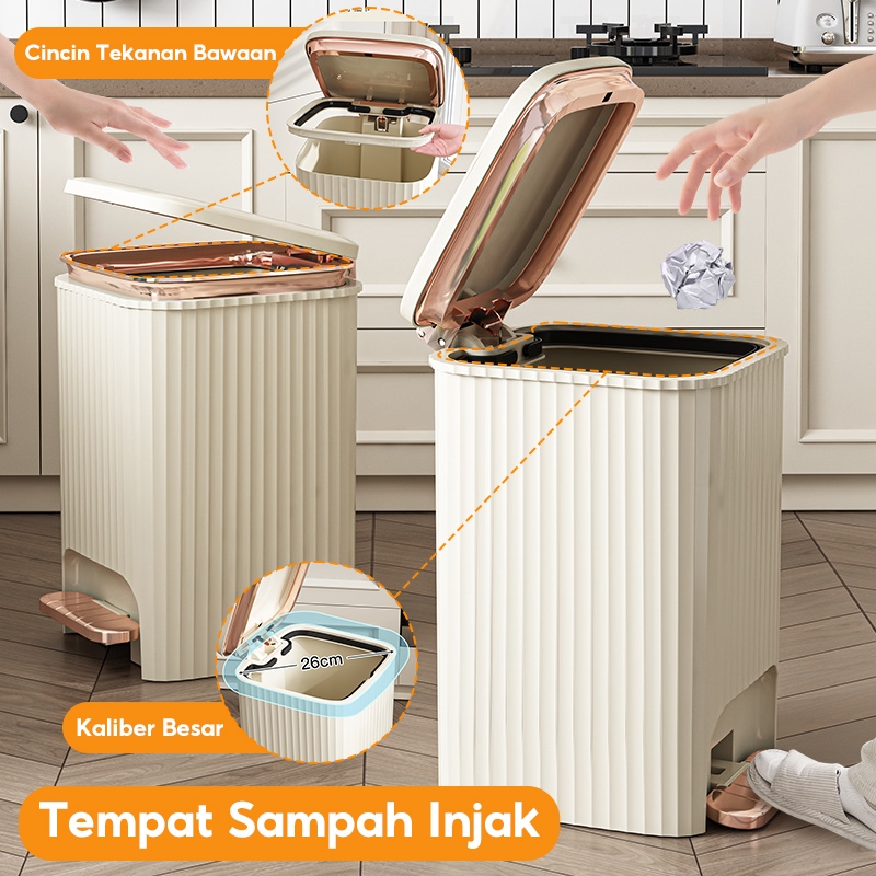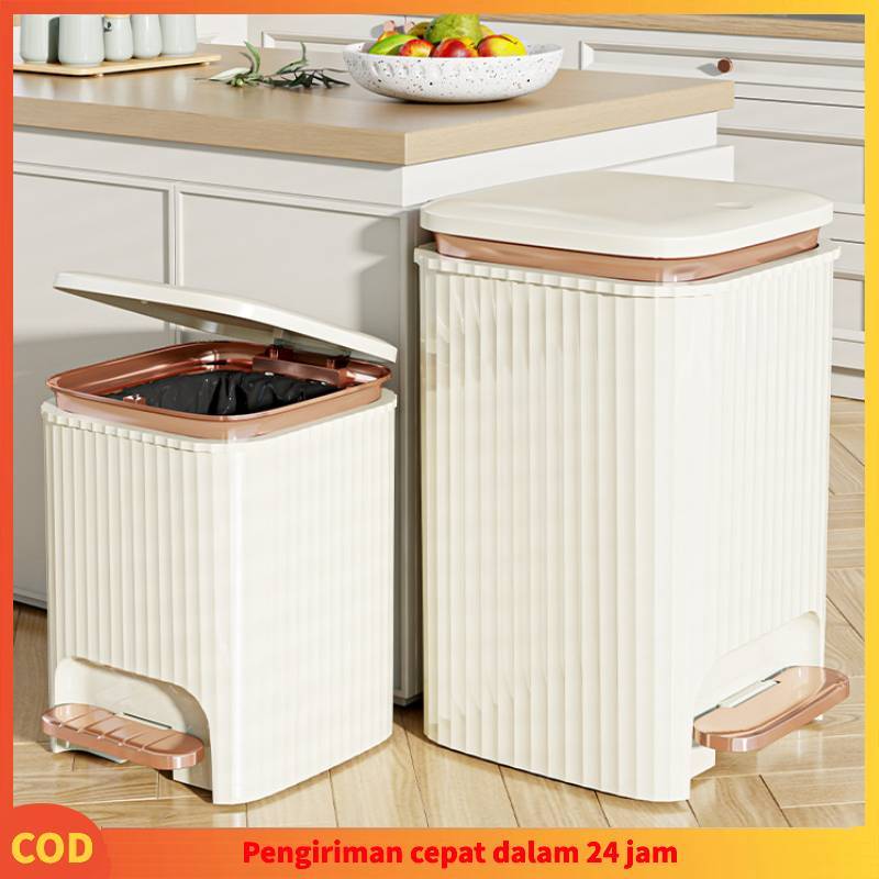 Tempat Sampah Injak Tong Sampah Plastik Tertutup Trash Bin Kotak Sampah Dapur Mode Pembukaan Pintu