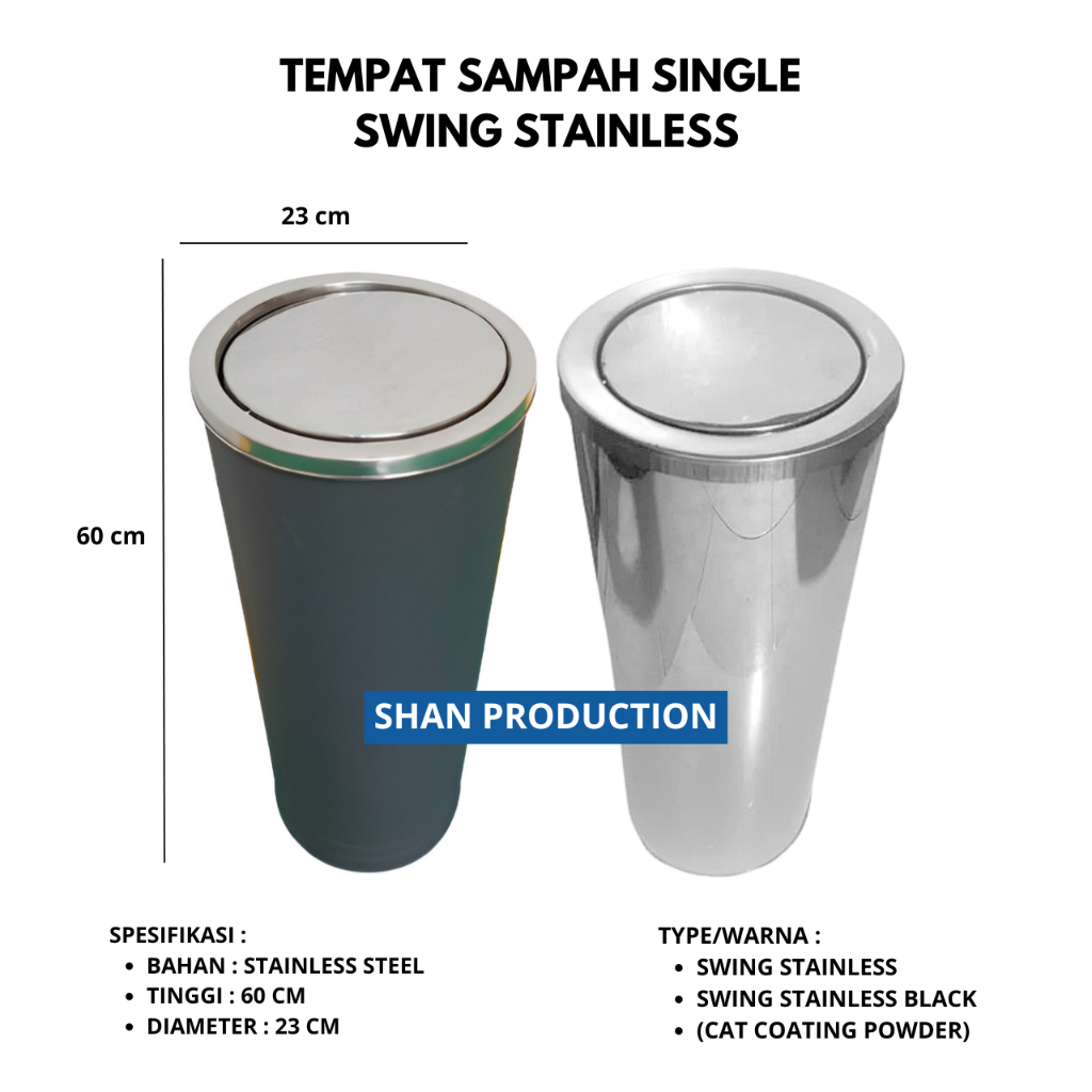 Tempat Sampah Tabung Stainless Steel Tutup Goyang - Tong Tempat Sampah Swing Tabung Stenlis